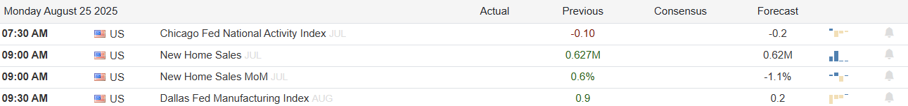Heading into Labor Day, the economic news will be diminished. However, PCE prices on Friday will shed more light on how tariffs are impacting inflation. Furthermore, given that tariff-based inflation seems to be the only thing that may keep the Fed from cutting rates, a weak print could assure a rate cut in September and future meetings.