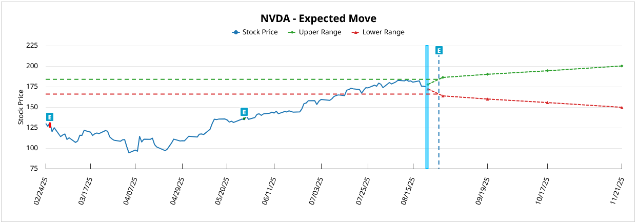 Nvidia earnings will headline this week. Given how the AI industry has driven corporate profits and the infrastructure buildout, their earnings report on Wednesday and, importantly, their forward guidance, could greatly impact stocks that have been leading the way higher. This includes some of the Magnificent Seven stocks, but a slew of high-beta, low-profitability companies. Currently, options prices suggest the stock could move up or down by $11 or 6.5%. Historical swings have been around 11% on average over the last eight reports. The graph below, courtesy of Barchart, shows the options’ expected outcomes.