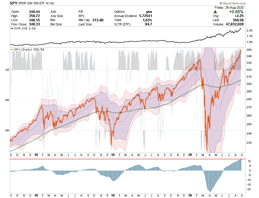 - Wow. SPY is now extraordinarily overbought and pushing well into 3-standard deviations above the 50-dma. As noted in this week’s #Macroview, the deviations of WEEKLY measures are at historical extremes.