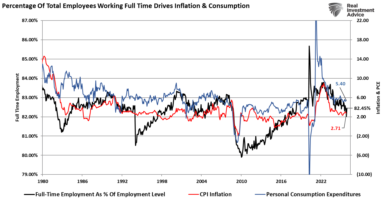 If the reflation narrative comes to fruition, as expected, strong economic growth will require increased demand. That increased demand will be reflected in rising wages and higher commodity prices, which will translate into a rise in inflation. In other words, it is difficult to get “reflation” without also getting “inflation.”